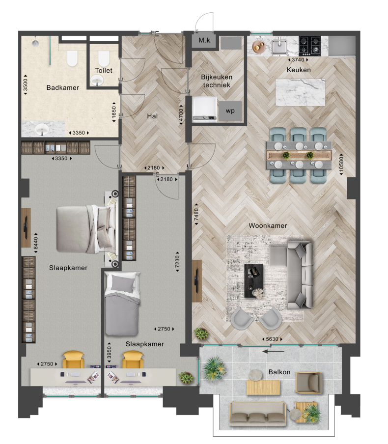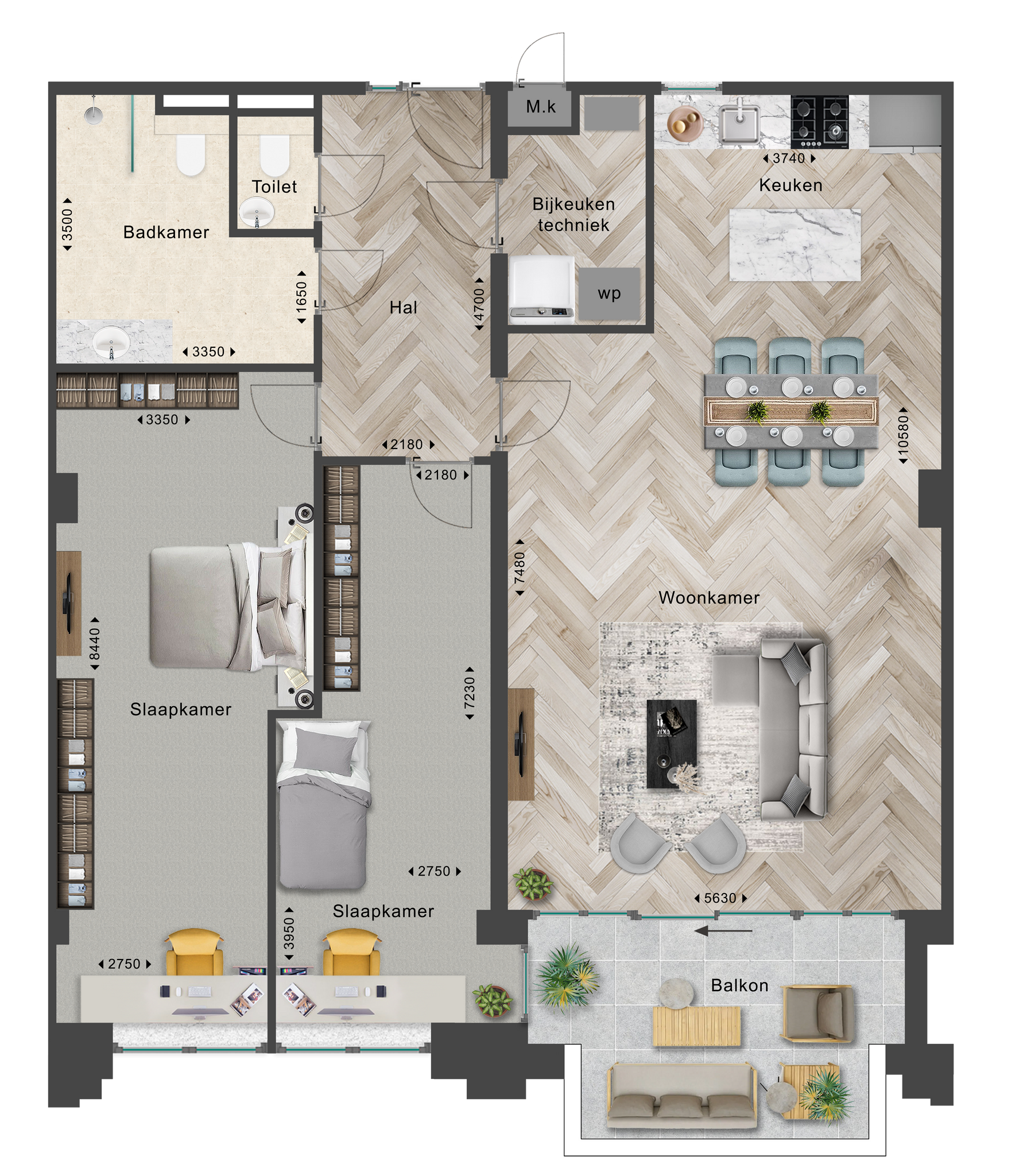 Met een woonoppervlak van circa 128 m² is dit appartement ruim bemeten en slim ingedeeld. De living is circa 10,50 bij 5,60 meter en biedt volop plek voor een gezellige zithoek én een royale woonkeuken. Door de grote ramen stroomt het daglicht rijkelijk naar binnen, waardoor een prettige sfeer ontstaat die de ruimte extra benadrukt.
